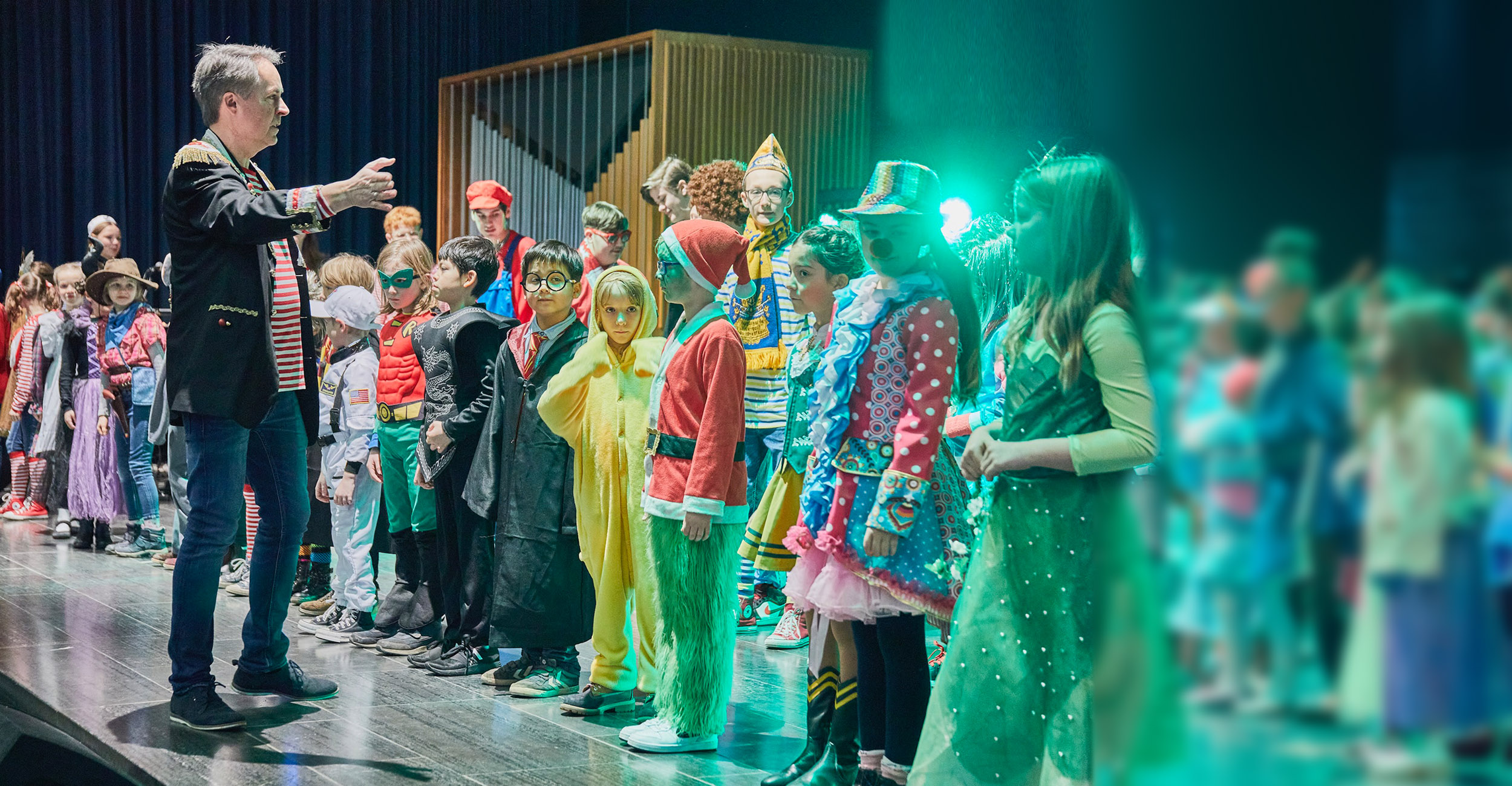 Platz da für unsere kleinsten Jecken heißt es auf der Kinderkostümsitzung in der Aula des Apostelgymnasiums. Hier bietet sich viel Platz zum Tanzen, Singen und Lachen. Liebe Eltern, aufgepasst! Die Karten sind schnell vergriffen.